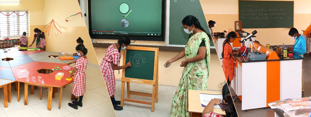To train children to be simple in their inward life and in their outward needs by making them understand the integration of mind & heart in everyday action. To enhance spontaneity, to block fear and prejudice, to be compassionate towards self and others. To highly awaken one’s own intuition, thoughts & feelings and unbiased investigation to undergo inward transformation. To develop scientific temper through self-knowledge and self-expression. To cultivate accountability of the individual, co-operation and not competition, a happy, harmonies and healthy student and learning environment to produce collective results under effective leadership of the educator. Use Education as an instrument to balance out social inequality, individualized guidance, to create an environment of holistic learning through inclusive learning and teaching.